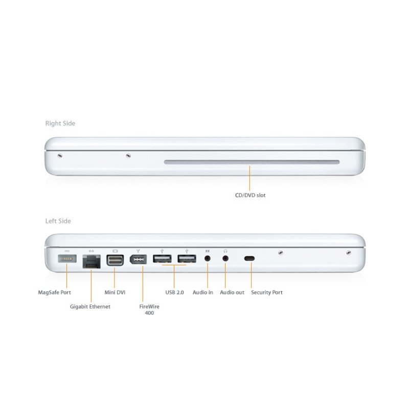 The new MacBook now comes with 1GB of memory standard and larger hard drives for the entire line perfect for running more of your favorite applications and storing growing media collections.
